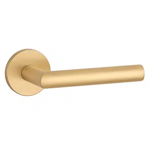 Diese Aprile-Türgriffe sind sowohl mit runden als auch quadratischen Rosetten erhältlich und werden als Paar mit mattgoldener Oberfläche geliefert.