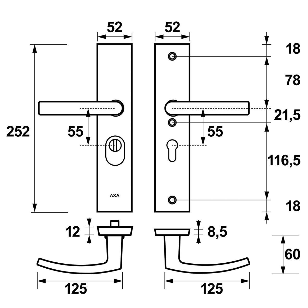 • Türknauf am Schild (nicht drehbar)