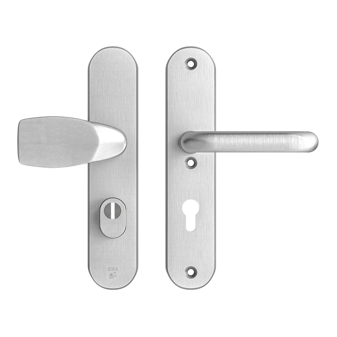 • Chrommatte Türgriffe auf Rosette